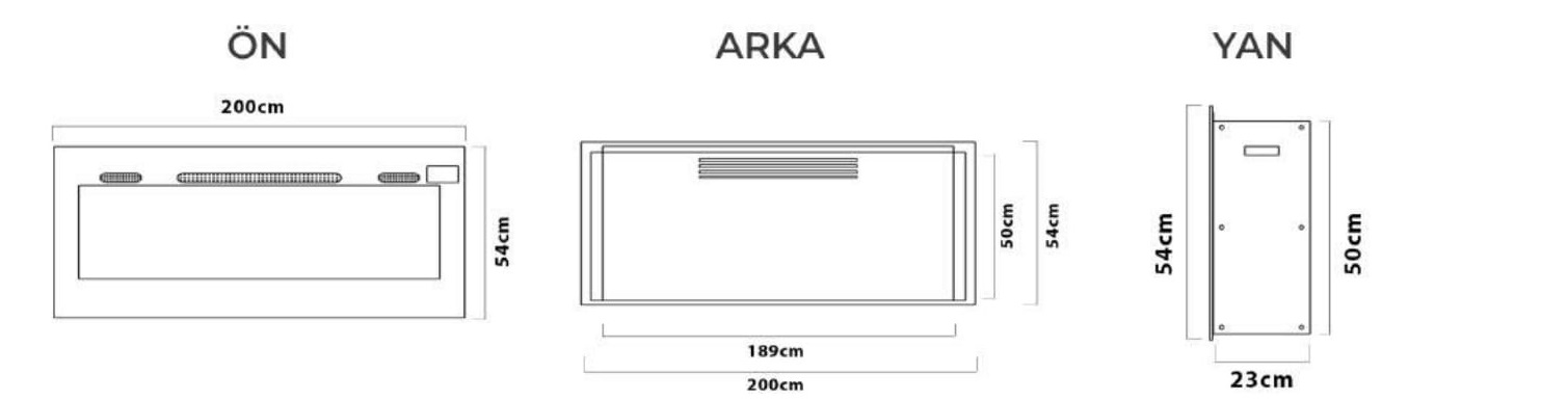 200 CM'LİK ELEKTRİKLİ ŞÖMİNE HAZNESİ