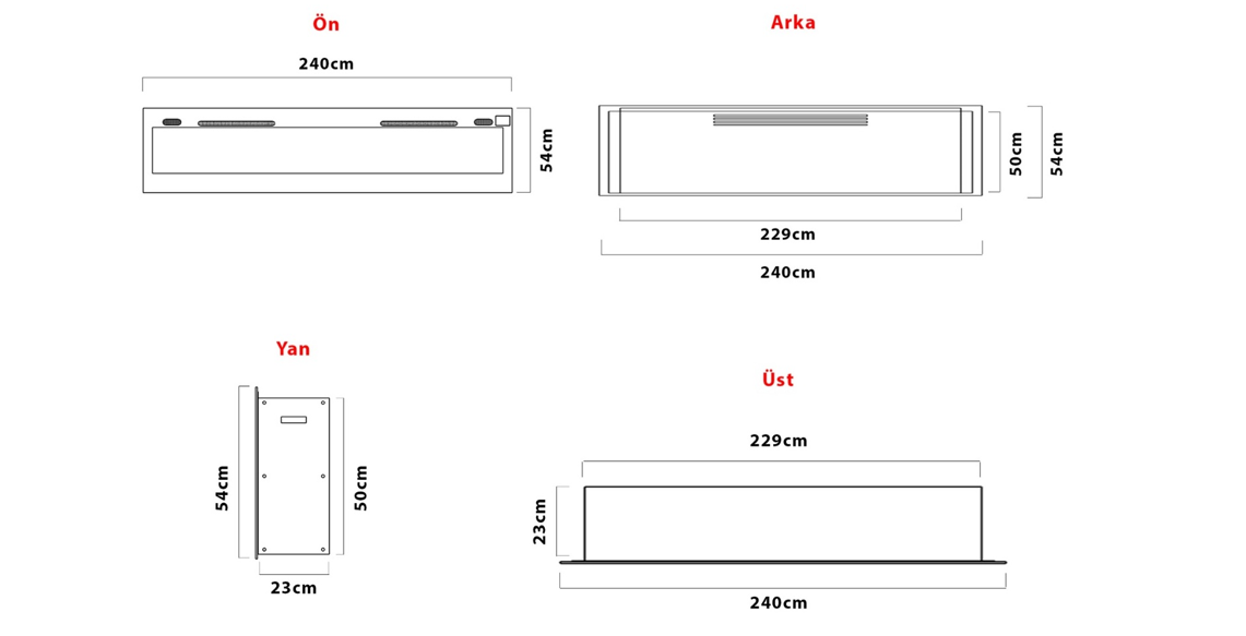 240 CM'LİK ELEKTRİKLİ ŞÖMİNE HAZNESİ