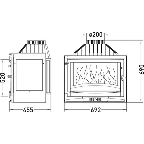 Üretim Belgesi: CE Üretim Normu: EN 13229 Isıtma Kapasitesi: 10 kw Min-Max Isıtma Kapasitesi : 6,5-15 kw Isıtma Hacmi:135-300 m³ arası Isıtma Alanı: 55-120 m² arası Verim: %73,2 CO oranı: %0, Cam Temizleme Sistemi Baca Klapesi: Yok Izgara Takma Yeri: Yok Azami Odun Uzunluğu: 50 cm Baca Çapı: 20 cm Ölçüler: H 690 x W 692 x D 455 mm Ağırlık: 132 kg Üretim Yeri: Fransa